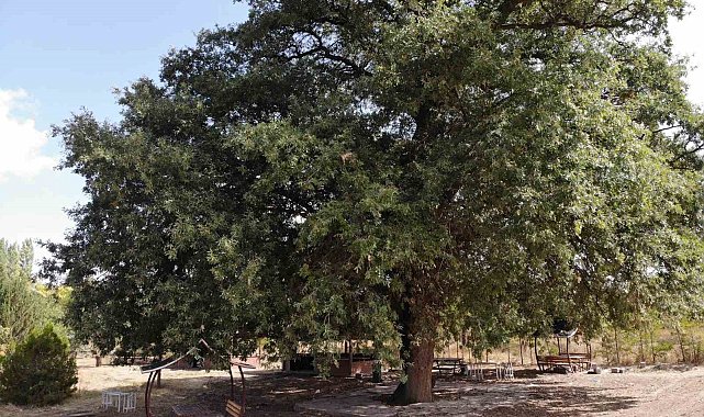 Nevşehir'in Hacıbektaş ilçesinde bulunan 700 yaşındaki saplı meşe ağacı, Nevşehir Hacı Bektaş Veli Üniversitesi Fen-Edebiyat Fakültesi Türk Halk Bilimi Bölümü tarafından hazırlanan rapor sonrasında, Nevşehir Tabiat Varlıklarını Koruma Bölge Komisyonu tarafından anıt ağaç olarak tescillendi.Türkiye'nin birçok coğrafyasında tescillenerek koruma altına alınan ve doğal miras kabul edilen anıt ağaçlar tarihe tanıklık etmeye devam ediyor. Nevşehir Hacı Bektaş Veli Üniversitesi Fen-Edebiyat Fakültesi Türk Halk Bilimi bölümü öğretim üyesi Doç. Dr. Kübra Yıldız Altın, tescillenen anıt ağaç hakkında İhlas Haber Ajansına yaptığı açıklamada, "Dedebağ mevkiinde bulunan bu anıt ağacımız saplı meşe ağacı. Saplı meşe ağacı uygun şartlar altında 30-40 metre boy ve 2 metre çap yapabilmekte. Özellikle bin yıl yaşayabilen bu meşe türü Anadolu'nun farklı noktalarında da bulunmaktadır" dedi.Altın, "Bu meşe ağacının tescil raporu hazırlandı. Bölge komisyonundan tescil ağaç olarak tescillenmesi yönünde uygundur kararı alındı. Bu meşe ağacının boyu yaklaşık 28 metre, tepe çapı 24 metre, iki gövde üzerine büyüyen ağacın tek gövde boyu da 4 metredir. Yaptığımız incelemelerde yaşının da 700 yaşında olduğu tescillendi" şeklinde konuştu.Türünün tek örneğiAğacın diğer türlerine göre farklı bir görünüme sahip olduğunu da sözlerine ekleyen Altın, "Bu ağaç ile yaptığımız alan çalışmalarında, sözlü kültür belleğinde ve halk arasında iki sevgili için dikildiği ve sonrasında bu sevgililerin tekrar birleştiği halk anlatımlarından tespit edildi. Bölgede yaptığımız çalışmalarda birden fazla saplı meşe ağacı tespit ettik. Ancak bu saplı meşenin topraktan çıktıktan sonra iki gövdeye ayrılması ve sonrasında üst kısımdan tekrar birleşmesinden dolayı diğer türlerine göre farklı bir görünüme sahip" ifadelerini kullandı.