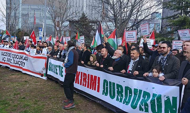 Farklı sivil toplum kuruşlarından (STK) temsilciler, İsrail'in Filistin'e yönelik gerçekleştirdiği askeri hareketliliğe tepki göstermek için Amerika Birleşik Devletleri (ABD) Ankara Büyükelçiliği önünde bir araya geldi.Çeşitli sivil toplum kuruşu ile dernek temsilcileri Çankaya'da yer alan ABD Ankara Büyükelçiliği önünde bir araya gelerek İsrail'in Filistin'e gerçekleştirdiği askeri saldırıya tepki gösterdi, Filistin destekçileri, masum halka yönelik zulmün son bulması gerektiğini haykırdı."Gazze bu gün sadece katliamlarla değil aynı zamanda açlık ve salgın hastalıklarla da karşı karşıyadır"Toplanan kalabalık adına konuşan STK temsilcisi Ramazan Acar, "İşgalci, ırkçı İsrail rejiminin Gazze'ye karşı 133 gündür devam eden soykırımında tespit edilen can kaybı 28 bini aştı, enkaz altında olduğu tahmin edilen 7 bin kayıp da dahil edildiğinde 35 bine ulaşan can kaybı ile karşı karşıyayız. Bu kayıplar içinde hayatını kaybeden çocukların sayısı 12 bini, kadınların sayısı ise 8 bini geçti. 350'ye yakın sağlık çalışanı hayatını kaybederken, öldürülen gazeteci sayısı 126'ya ulaştı. Gazze bu gün sadece katliamlarla değil aynı zamanda açlık ve salgın hastalıklarla da karşı karşıyadır" dedi."İsrail; başta Amerika ve İngiltere olmak üzere batılı devletlerin himayesinde katliamlarına ara vermeden devam etmektedir"İsrail'in zulme devam ettiğini söyleyen Acar, "Uluslararası Adalet Divanının kararına, Birleşmiş Milletler kararlarına, uluslararası kuruluşların ve dünyanın farklı coğrafyalarında meydanlarda gösteri yapan kamuoyunun çağrılarına rağmen İsrail; başta Amerika ve İngiltere olmak üzere batılı devletlerin himayesinde katliamlarına ara vermeden devam etmektedir. Bugün, dünyanın doğusunda batısında vicdan sahibi onbinler, yüzbinler başka insanların acısını yüreklerinde hissederek İsrail katliamlarına karşı tepki gösteriyorlar. İsrail soykırımının durması için mücadele eden, kendi devletlerini insani tavır almaya çağıran vicdanlı insanları buradan selamlıyoruz. Yine zulme ve zalime hiçbir şekilde boyun eğmeden kıt imkanlarına rağmen İsrail'e karşı onurluca mücadele eden Gazze'nin yiğit evlatlarını da selamlıyoruz. Bütün uluslararası kuruluşları ve dünya kamuoyunu hepimizin gözleri önünde devam eden bu vahşi soykırımı insanlık adına durdurmaya davet ediyoruz" ifadelerini kullandı.