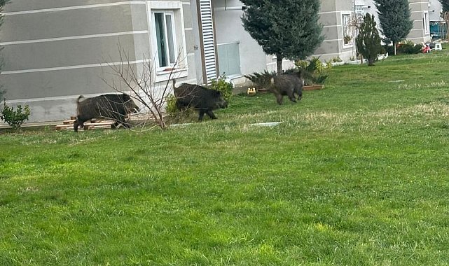 İstanbul Çatalca'da aç kalan domuzlar bir siteye girdi. O anlar vatandaşların cep telefonu kamerasına yansıdı.Çatalca Ferhatpaşa Mahallesinde dün saat 14.00'te ormanda yiyecek bulamayan domuzlar ilçe merkezine inerek bir siteye girdi. Vatandaşların şaşkın bakışları arasında sitede bahçesinde bir süre dolaşan domuz sürüsü, ardından ilçe merkezinin farklı noktalarında dolandıktan sonra gözden kayboldu. Domuzların ilçenin bir çok noktasında gezme anları vatandaş kamerasınca kaydedildi. Görüntülerde, domuzların bir sitenin kapısını zorladığı ve giremeyince hızla uzaklaştığı yer aldı.