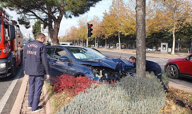 Kayseri'nin Melikgazi ilçesinde refüjdeki ağaca çarpan otomobilde maddi hasar oluştu.İlçeye bağlı Esenyurt Mahallesi Mehmet Özhaseki Bulvarı üzerinde meydana gelen kazada, sürücüsünün direksiyon hakimiyetini kaybettiği 06 CCU 356 plakalı otomobil, refüjdeki ağaca çarptı. İhbar üzerine bölgeye polis, sağlık ve itfaiye ekipleri sevk edildi. Kazada yaralanan olmazken, otomobilde maddi hasar oluştu.Kazaya karışan otomobil çekici ile kaldırıldı.
