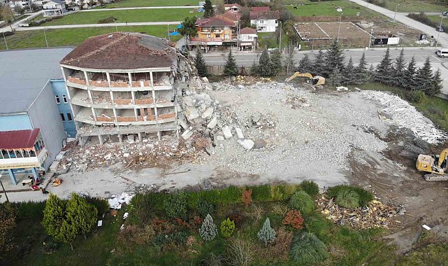 DÜZCE (İHA) – Düzce'de 23 Kasım 2022 depreminde ağır hasar alan Turgut Özal Anadolu Lisesi'nin yıkım çalışmaları başlatıldı.Düzce Turgut Özal Anadolu Lisesi'nin bulunduğu bina 23 Kasım depremlerinde ağır hasar alınca yıkılmasına karar verilmişti. Depreme dayanıksız olduğu için yıkım kararı alınan okul, Düzce İl Özel İdaresi tarafından yapılan ihale usulü ile yıkımı yapacak firmanın belirlenme sürecinin tamamlanmasının ardından yıkım çalışması okulda başladı. Ekskavatörler ve deliciler ile birlikte başlanılan yıkım çalışmasının 1 hafta içerisinde tamamlanması beklenirken, okulda ki yıkım çalışması havadan drone ile görüntülendi.