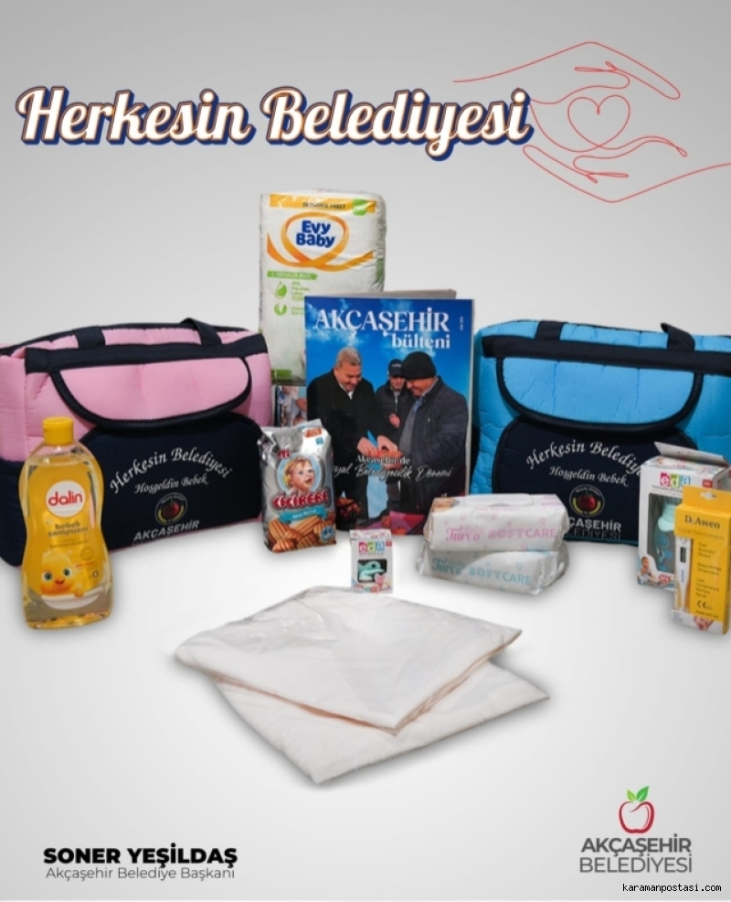 "Akçaşehir Belediyesi olarak kasabamızda yeni bebeği olan ailelerimizin sevinçlerine ortak olmak ve ailelerimizin ekonomilerine katkı sağlamak amacıyla "Hoş Geldin Bebek" çantası hazırladık. İçini de bebek bezinden ateş ölçerine varıncaya kadar temel ihtiyaç malzemeleriyle doldurduk. 0-3 aylık bebeği olan tüm hemşehrilerimizi bebeklerinin kimlikleriyle birlikte belediyemize bekliyoruz. Yolu, parkı, kaldırımı elbette yapacağız. Kasabamızın ihtiyaçlarını elbette karşılayacağız. Fakat insanımıza direkt olarak dokunan projelerimize de aralıksız devam edeceğiz. "Herkesin Belediyesi" olmanın gereklerini yerine getirmeye ve insanımıza el uzatmaya devam edeceğiz. Çünkü biz büyük bir aileyiz." ifadelerini kullandı. Yeni bebek sahibi olan ailelere hediye edilen Yeni Doğan Çantalarında bebek bezi, battaniye, ıslak havlu, ateş ölçer, bebe bisküvisi, biberon, emzik ve bebe şampuanı gibi temel ihtiyaç malzemeleri bulunuyor.