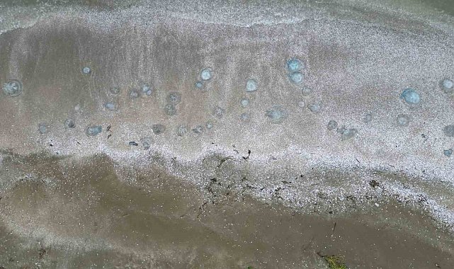HATAY (İHA) – Akdeniz kıyılarında kısım kısım etkisini hissettiren denizanası istilası Hatay'ın Erzin ilçesinde bulunan sahilde de etkisini gösterdi.Akdeniz kıyılarında geçtiğimiz haftalara ölü denizanaları görülmeye başlanmıştı. Akdeniz'e kıyısı olan Hatay'ın Samandağ ve İskenderun ilçelerinde sahilde ölü denizanaları görülmüştü. Şimdiyse Erzin ilçesinde bulunan Burnaz sahili de ölü denizanalarıyla kaplandı. Uzmanların 'dokunmayın' uyarısında bulunduğu sahil şeridini kaplayan denizanaları dron ile havadan görüntülendi."Bu denizanaları 3-4 sene içerisinde bizim sahillerimizi istila edebiliyor"30 yıldır tekneyle balıkçılık yapan Ali Ercan Karademir (55), "1992'den beri ağaç tekneyle balıkçılık yapan bir kaptanım. 1992'den beri bu sahilin çocuğuyum. Şimdi bu denizanaları tabiatın kanununa göre dünyada var. Bu denizanaları 3-4 sene içerisi zarfında bizim sahillerimizi istila edebiliyor. Bunun amacı da sahile yumurta bırakmalarıdır. Kıbrıs'a bırakabiliyor, Suriye'ye bırakabiliyor ve herhangi bir sahili bol olan bir yere bırakabiliyor. Görmüş olduğunuz gibi sahil kenarlarında binlerce denizanası zaafıyla dolu. Balık yiyor, güçsüz olanlar da sahile dalgalarla ve fırtına sayesinde kendini sahile atıyor ve imha ediyor. Burada bakın binlerce var" dedi.
