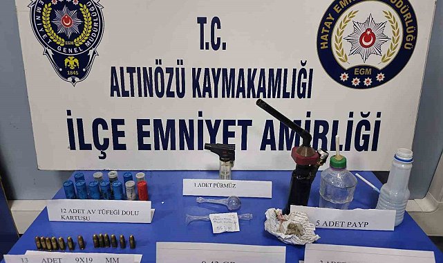 Hatay'da uyuşturucu madde ticareti yapan şahsın evinde ve iş yerinde yapılan aramada çok sayıda fişek ve uyuşturucu madde ele geçirildi.Hatay Emniyet Müdürlüğü, uyuşturucu imal ve ticaretine yönelik çalışmalarını aralıksız sürdürüyor. Çalışmalar kapsamında 4 Ekim günü Altınözü'nde durdurulan S.B.'nin yapılan üst aramasında; 0,43 gram metamfetamin ele geçirildi. Şahsın uyuşturucu maddeyi temin ettiği tespit edilen A.Ş.'nin işyerinde ve ikametinde yapılan aramada; 12 av tüfeği fişeği, 13 tabanca fişeği, 1 adet payp, 2 adet payp ısıtmak için kullanılan pürmüz, 2 adet uyuşturucu içiminde kullanılmış pet şişe ve 3 paket kenevir tohumu ele geçirildi. Olayla ilgili olarak şahıslar hakkında TCK 191. maddeden ve 6136 Sayılı Kanuna Muhalefetten işlem yapıldı.