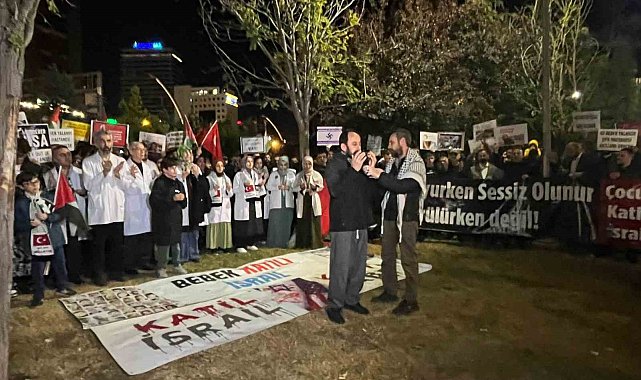 Ankara'da ABD Büyükelçiliği önünde sivil toplum örgütleri ve sağlıkçılar Filistin'e destek eylemi düzenledi.Ankara Filistin Dayanışma Platformu, ABD Büyükelçiliği önünde Filistin'e destek eylemi düzenledi. Düzenlenen eyleme vatandaşlar ve bazı sağlık sendikalarına mensup sağlıkçılar katıldı. Eylemciler "Kahrolsun İsrail işbirlikçi ABD" sloganları attı. Eylemde konuşan Prof. Dr. Furkan Erol Karabekmez, ambargolar nedeniyle ilaca erişimin olmadığını belirterek, "İsrail'in saldırıları ve ambargoları nedeniyle su, elektrik, ilaç ve bez gibi en temel insani ihtiyaçların Gazze'ye girişi engellenerek 3 milyona yakın insana her haliyle soykırım uygulanmaktadır" ifadelerini kullandı.İsrail askerlerinin hastaneleri bastığını söyleyen Karabekmez, "İsrail ordusunun Gazze'deki Şifa Hastanesine yaptığı baskında katliam yapması, sağlık personelinin, yaralıların ve hastanede yerinden edilmiş binlerce Filistinlinin güvenliğinden İsrail ile beraber ABD ve uluslararası toplum sorumludur. İsrail askerlerinin hastanede onlarca sağlık personelini ve yerinden edilmiş binlerce kişiyi alıkoyarak sorguya alıyor. Hastaneye sığınanları ellerini ve gözlerini bağlayarak, kıyafetlerini çıkararak, bilinmeyen bir yere götürüyor" dedi.Karabekmez, tüm sağlıkçıları İsrail'e karşı olmaya çağırarak, "Buradan dünyanın neresinde olursa olsun, hangi din ve millet mensubu olursa olsun sağlık hizmeti veren tüm insanları ayağa kalkmaya ve bu barbarlığın karşısında durmaya davet ediyoruz" ifadelerine yer verdi.Karabekmez'in konuşmasının ardından edilen dua ile eylem son buldu.