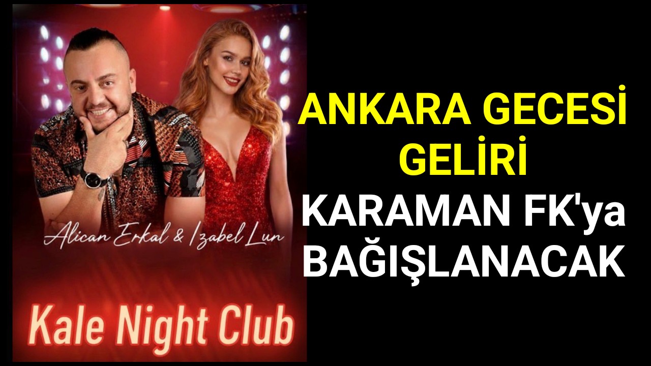 Karaman’da düzenlenecek ankara Gecesi’nin geliri, maddi sıkıntı yaşayan Karaman Futbol Kulübü’ne destek olarak aktarılacakKaraman’da Karaman Futbol Kulübü’ne destek amacıyla Ankaralılar Gecesi düzenleniyor. Ankaralı sanatçı Ali Can Erkal, bu akşam Karaman Kale Night Kulüp’te sahne alacak. Sanatçıya sahne performansında dans gösterisiyle İzabella eşlik edecek.Düzenlenecek geceden elde edilecek gelirin tamamı, Karaman FK’ya bağışlanacak. Maddi açıdan zorlu bir süreçten geçen kulüp için gerçekleştirilen organizasyon, sporseverler ve Karamanlılar tarafından ilgiyle karşılandı.Karaman FK As Başkanı Murat Çolakoğlu, programla ilgili yaptığı açıklamada şu ifadelere yer verdi: