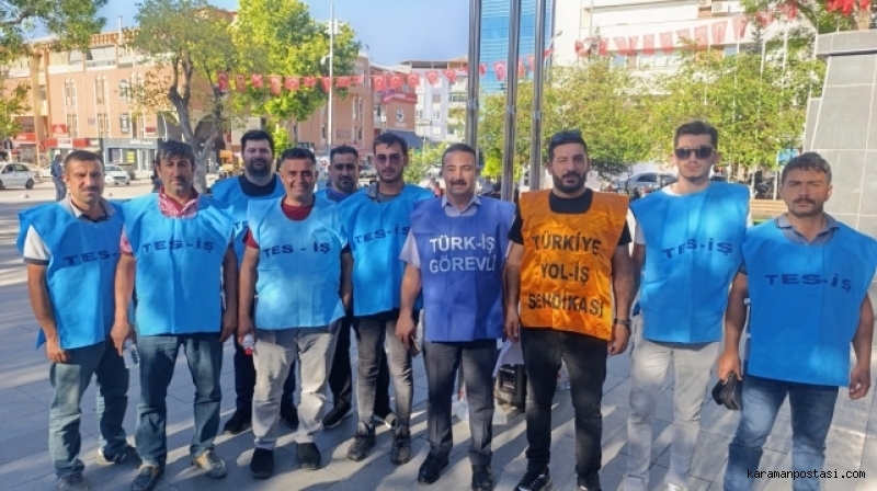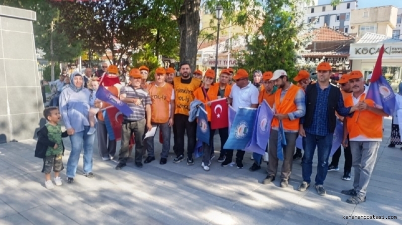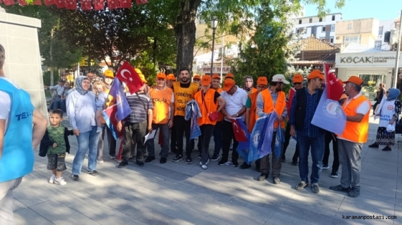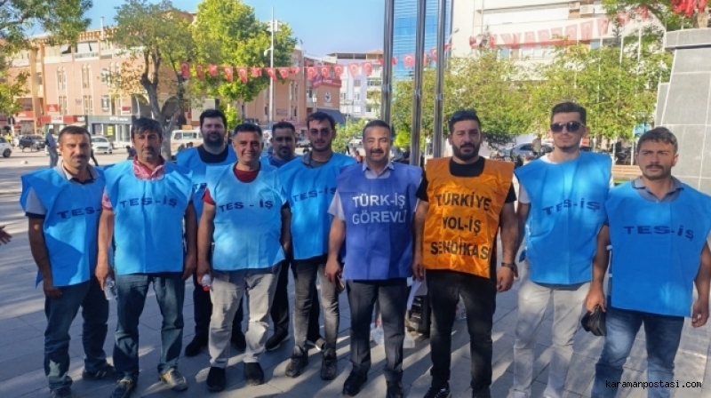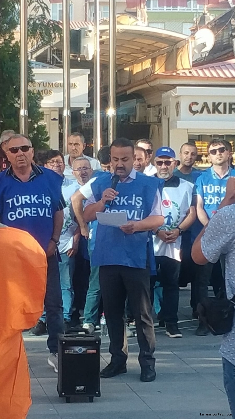 Kamu işçilerinin toplu iş sözleşmesinde anlaşmaya varılamaması nedeniyle TÜRK-İŞ, Cumhuriyet Parkında toplanarak eylem yaptı.TÜRK-İŞ karaman İl Başkanı Mesut Soyfidan, yaptığı konuşmada şunları söyledi: "Artık Yeter, Sabrımız Taştı! Biz kamuda çalışan işçiler olarak; 2025 yılı Toplu İş Sözleşme sürecinde karşılanmayantaleplerimiz, ücret artışımız ve haklarımız için verdiğimiz mücadeleden aslavazgeçmeyeceğimizi her fırsatta dile getirdik.Bu kararlı duruşumuzun bir parçası olarak eylem planımızı kamuoyuna basın aracılığıyladuyurduk.Geçtiğimiz hafta, 81 ilde iş yerlerimizin önünde bildirilerimizi okuduk.Uyardık, çağrıda bulunduk. Dedik ki:"Geçim derdi büyüdü, bu teklif toplu sözleşme değil, toplu oyalamadır! İşçiyi, emekçiyiaçlığa mahkûm etmektir!"Ve bugün, eylem planımız doğrultusunda bir adım daha atıyoruz:Alanlardayız, meydanlardayız. Kitlesel olarak sesimizi yükselteceğiz.Değerli emekçi kardeşlerim!Fakat görüyoruz ki ne bizi duyan olmuş, ne de halkın gerçekleriyle yüzleşen.Hükümet geçtiğimiz hafta cuma günü yapılan toplantıda bizlere yine geçim şartlarınauygun olan, kabul edilebilecek bir teklif sunmamıştır. Hatta öyle bir teklif ki işçininemeği adeta yok sayılmıştır.Bize reva görülen ücret tüm ülkede işçi kitlemiz ve kamuoyu tarafından üzüntüylekarşılanmıştır. Neden mi üzüldük.Bir söz vardır bilirsiniz;Baltayı ağaca vurmuşlar. Balta ağaca 'Neden üzüldün?' diye sormuş.Ağaç demiş ki!'Senin bana yaptığına değil, sapın gövdemdendir ben ona üzüldüm.' demiş.Bizi yönetenlere söylüyoruz;Bu ülke hepimizin ve biz ülkemize milletimize hizmet ediyoruz ...Siz bunu unuttunuz bunu! Biz ona üzüldük.Biz emekçiyiz! Biz işçiyiz! Biz köle değiliz!Biz çalışıyoruz, onlar oyalıyor. Biz üretiyoruz, onlar görmezden geliyor.Taleplerimiz duyulana kadar,Haklarımız teslim edilene kadar,Emek mücadelemizi sonuna kadar sürdüreceğizİşte bu yüzden artık sokaktayız, meydanlardayız, alanlardayız!Geçinemiyoruz. Zordayız.Eylemse eylem, grevse grev!Meydanlarda mı yatacağız yatarız, aç mı kalacağız kalırız.Zaten çalışan biziz, zaten aç kalan biziz.İşçiyiz biz işçiHakkımızı alana kadar, direne direne kazanacağız.!TÜİK'in açıkladığı enflasyon rakamlarıyla halkın yaşadığı gerçekler arasında dağlarkadar fark var.TÜİK in verileri yaşadığımız geçim sıkıntısını yansıtmıyor.Mutfakta yangın var, ama TÜİK hâlâ “güzel havalardan" bahsediyor!Biz emekçiler pazarda, manavda, sokakta gerçek enflasyonu yaşıyoruz.Açıkladığınız veriler bu yangını ne söndürebilir, ne de gizleyebilir!Pazardan eli boş dönen emekçi TÜİK'in verilerine değil, cebindeki üç kuruşa bakarak,yaşamaya çalışıyor.Gerçekleri görmek istiyorsanız TÜİK'in raporlarına değil, işçinin boş tenceresine bakın!Ülkemizde vergi yükü işçinin emekçinin sırtına bindirilmiş. Maaşlarımız daha cebimizegirmeden yüzde 27 si eriyor. Az kazanandan çok vergi alan bir sistemde adaletten sözedilemez.Yanlış hesaplarınızın faturasını biz emekçilere ödetemezsiniz!Çıkıp bir sokağa bakın, çarşıya pazara bakın!Sadaka değil, hakkımızı istiyoruz!Kuru vaat değil, toplu sözleşme hakkı istiyoruz!Adil bir ücret, güvenli bir gelecek istiyoruz!"