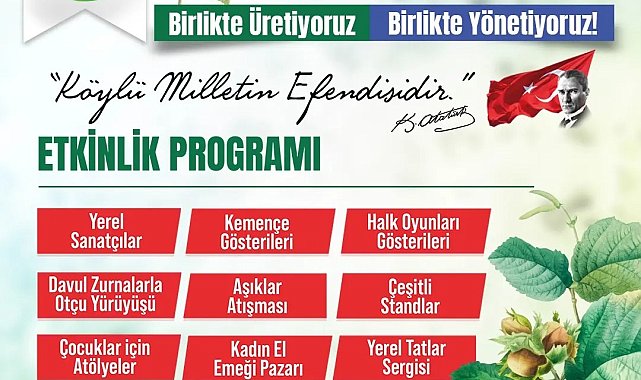 Samsun'un Atakum Belediyesi'nin organize ettiği "1. Fındık Festivali", 29 Eylül Pazar günü Özören Mahallesi'nde gerçekleşecek.