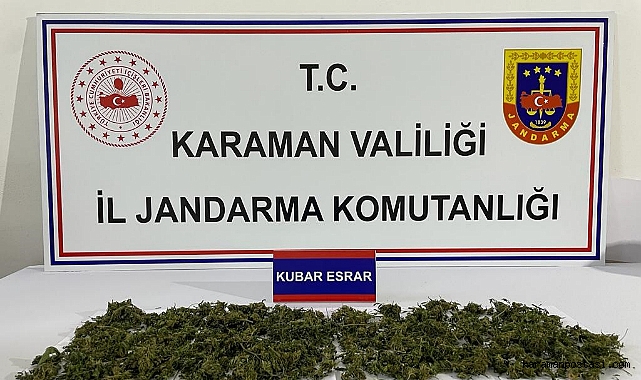 Karaman İl jandarma Komutanlığınca yapılan istihbari araştırmalar neticesinde; Karaman İl Merkezinde ikamet eden F.K. isimli şahsın evinde uyuşturucu madde bulundurduğu ve bu uyuşturucu maddeleri uyuşturucu kullanan şahıslara sattığı bilgisi elde edilmiştir. Adli Makamlardan alınan arama kararına istinaden şahsın ikametinde yapılan aramada, (2) adet cam kavanoza doldurulmuş satışa hazır halde 250 gr. kubar esrar maddesi ele geçirilmiş olup, şüpheli şahıs hakkında adli işlemlere başlanılmıştır.