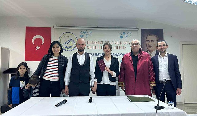 Denizli'nin Çameli ilçesinde yılın son nikahı kıyıldı. Çameli Belediye Başkanı Cengiz Arslan nikah töreninde çiftleri yalnız bırakmadı.Denizli'nin Çameli ilçesinde 2023 yılının son nikahı kıyıldı. Müzeyyen Paşaoğlu ile Ramazan Akyol çiftinin nikah törenine gerçekleştiren Çameli Belediye Başkanı Cengiz Arslan genç çiftlere mutluluklar diledi. Belediye Başkanı Arslan nikah töreninde, çiftler hayatlarını birleştirecek olan imzalarını atarken, hem dünya evine girecek olmanın mutluluğunu, hem de 2023 yılının son nikahını gerçekleştirmiş olmanın sevincini yaşadı.Çiftlerin mutluluğunu ortak olan Başkan Arslan, "Çameli Belediyesi Nikah Memurluğu tarafından 2023 yılının son nikahını kıydık. Yıl içinde yüzlerce çiftlerin mutluluklarına ortak olduk. Evlenen çiftlerimize iki cihanda saadet diliyorum. Rabbim mesut ve bahtiyar eylesin. 2024 yılında sağlık başta olmak üzere mutluluk ve bereket getirsin" dedi.