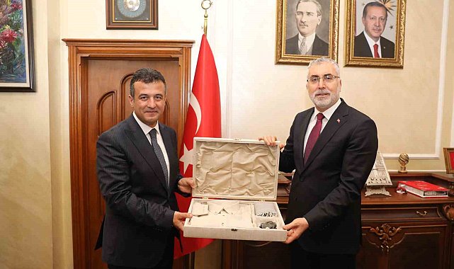SAMSUN (İHA) – Samsun Büyükşehir Belediye Başkanı Halit Doğan, "Tarımdan sanayiye, turizmden eğitime her alanda önemli bir potansiyele sahip olan Samsun'u daha ileri bir noktaya taşımak için aralıksız çalışıyoruz" dedi.Çalışma ve Sosyal Güvenlik Bakanı Prof. Dr. Vedat Işıkhan, Büyükşehir Belediye Başkanı Halit Doğan'ı makamında ziyaret etti. Ziyarette Bakan Işıkhan'a, Samsun Valisi Orhan Tavlı, AK Parti Genel Başkan Yardımcısı ve Samsun Milletvekili Çiğdem Karaaslan, AK Parti Samsun Milletvekili Ersan Aksu, ve AK Parti il teşkilatı üyeleri eşlik etti.Ziyarette ayrıca Büyükşehir Belediyesi bürokratları da bulundu. Başkan Doğan, ziyaret sırasında kentte gerçekleştirilen çalışmalar ve yapılması planlanan projelerle ilgili Bakan Işıkhan'a bilgi verdi. Samsun'da olmaktan büyük mutluluk duyduğunu belirten Bakan Işıkhan, Başkan Doğan'a çalışmalarında başarılar diledi.Başkan Doğan ise Samsun'un Karadeniz Bölgesi'nin merkezi ve lokomotif kenti olduğunu belirterek, "Tarımdan sanayiye, turizmden eğitime her alanda önemli bir potansiyele sahip olan Samsunumuzu daha ileri bir noktaya taşımak için aralıksız çalışıyoruz. Bu noktada bizlerden desteğini esirgemeyen Sayın Çalışma ve Sosyal Güvenlik Bakanımız Prof. Dr. Vedat Işıkhan'ı şehrimizde ağırlamaktan dolayı büyük mutluluk ve gurur duyuyoruz" diye konuştu.Şeref defterinin imzalanıp hediye takdiminin ardından ziyaret sona erdi.