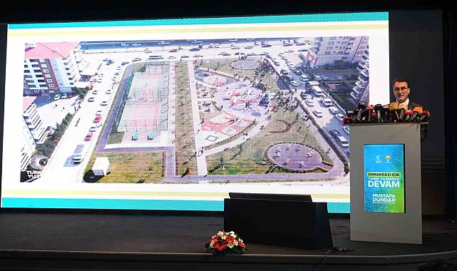 Osmangazi Belediye Başkanı Mustafa Dündar, yeni dönemde 11 kentsel dönüşüme imza atacaklarını, İnkaya'da 500 dönümlük yeni millet bahçesi ve Osmangazi Meydanı'nın 2.etabına imza atacaklarını belirterek, "Tarihi dönüşümü Kayhan ve Hisar bölgesinin tamamına yayacağız. Yeni dönemde dirençli şehirle çevre ve şehircilik standartlarını yükselteceğiz. Yeni bulvarlar ve yeni yollar yapacağız. Afet yönetim merkezini inşa edeceğiz. Vatandaşımıza daha
