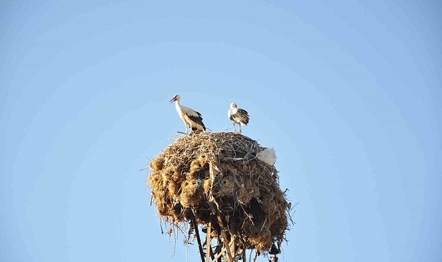 Batman'ın Sason ilçesinde Erdem ailesi, bahçelerinde bulunan elektrik direğinin başında yuva yapan ve göç etmeyen leyleklere komşu gözüyle bakıyor.Bir kaç yıl önce Demetevler Mahallesi'nde leylek yuvasında elektrik hattından kaynaklandığı düşünülen yangın çıktı. Yangın sonrası yuva yanarak kül oldu. Leylekler ise yangından kısa süre sonra yanan yuvalarını tekrar yaptı. Ardından yuvanın bulunduğu tarlaya ev yapan Mahmut Erdem, direğin tellerini keserek yuvayı koruma altına aldı. Erdem ailesinin tarlada ev yapmasından cesaret alan leyleklerin bir daha göç etmemesi, Mahmut Erdem ve çocuklarının da yüzünü güldürdü."Evin balkonundan onları besliyoruz"Daha önceki yıllarda her yıl göç eden leyleklerin son 6 yılda hiç göç etmediğini belirten Mahmut Erdem, "Bu direğin başında bulunan bizim leylek yuvamızdır. Biz buraya taşındığımızda direkte elektrik telleri vardı. Bir defasında elektrik tellerinden çıkan kıvılcımların leyleklerin yuvasını yaktığı için telleri kestik. Daha sonra bu direği tamamen leyleklere bıraktık. Daha önceki yıllarda sürekli göç eden bu leylekler ben buraya ev yaptıktan sonra bir daha göç etmedi. 6 yıldır burada olduğumuz için hiç göç etmiyorlar. Bizden güç alarak göç etmediklerini düşünüyorum. Bu durum bizleri çok sevindiriyor. Onlarla hoş vakitler geçiriyoruz. Bazen evin balkonuna çıkarak onları seyrediyor, onlara yemek atıyoruz. Leylek yuvasında yaklaşık yüzlerce kuş yuvası da var. Daha önce iki yavru yapıyorlardı. Bu yıl 5 yavru yaptılar. Bazen yavruları göç etse de anne baba leylek sürekli burada kalıyor ve hiç göç etmiyor. Biz de seviyoruz, çocuklarımız da çok seviyor" dedi.Evin küçük kızı Menessa Yağmur Erdem ise, "Her gün balkona çıkarak yavru kuşları ve leylekleri izliyoruz. Çilek toplarken geliyorlar onlara çilek veriyoruz, yemek de veriyoruz. Onları çok seviyoruz" şeklinde konuştu.