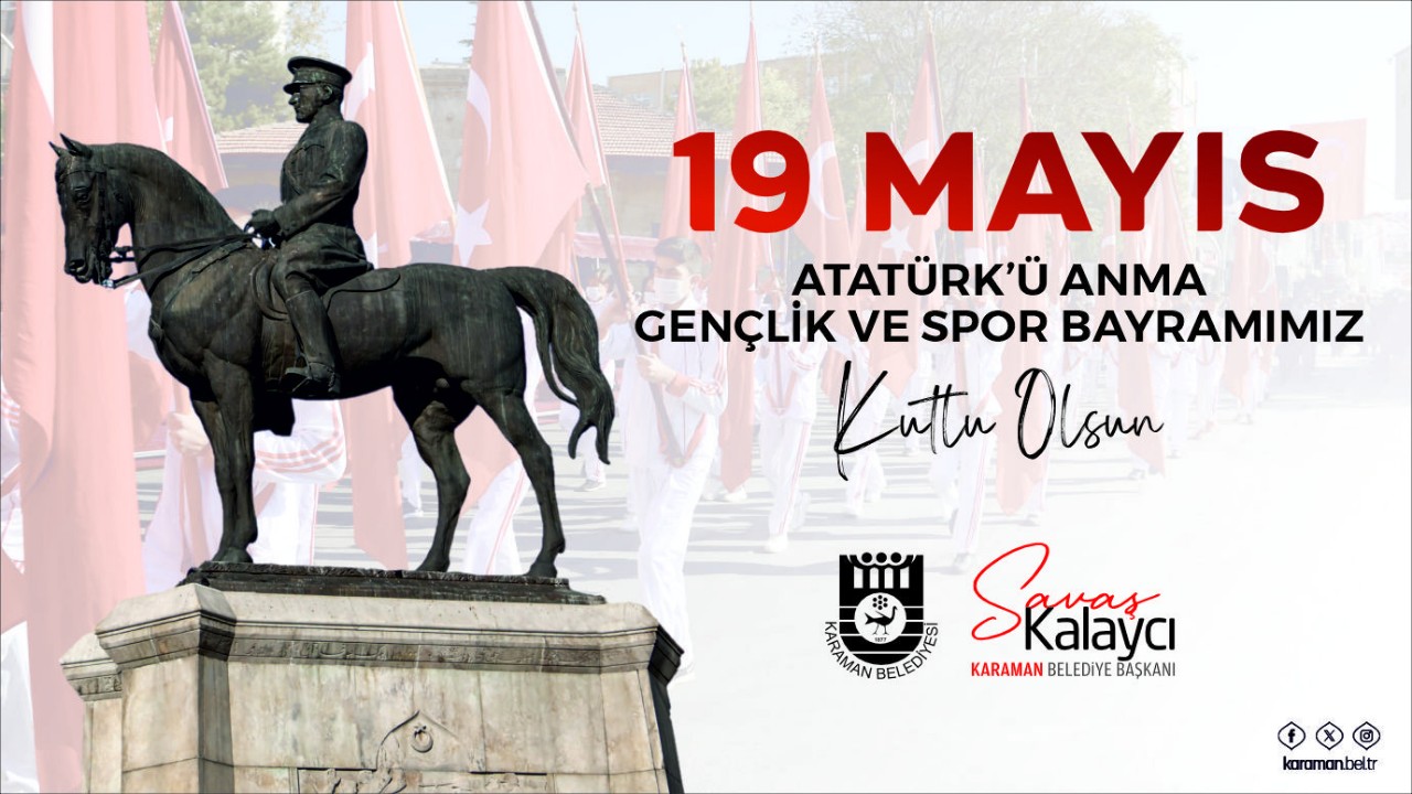 BELEDİYE BAŞKANI SAVAŞ KALAYCI’NIN 19 MAYIS MESAJIKaraman Belediye Başkanı Savaş Kalaycı, 19 Mayıs Atatürk’ü Anma, Gençlik ve Spor Bayramı dolayısıyla bir kutlama mesajı yayınladı.Belediye Başkanı Savaş Kalaycı, mesajında: “19 Mayıs 1919 tarihi, milletimizin bağımsızlık ve özgürlük iradesini tüm dünyaya ilan ettiği, Gazi Mustafa Kemal Atatürk’ün önderliğinde yürütülen istiklal mücadelesinin başlangıç noktasıdır. Aynı zamanda Türkiye Cumhuriyeti’nin temellerinin atıldığı ve milli birlik ruhunun perçinlendiği bu tarihi günün gençlere armağan edilmesi de, sevgili gençlerimizin ülkemizin geleceğinde üstleneceği sorumlulukları ve taşıdığı umutları simgelemektedir. Sizlerin; bilimde, sanatta, sporda ve her alanda göstereceğiniz başarılar ile idealleriniz, ülkemizi ve cumhuriyetimizi geleceğe taşıyacak en önemli güçtür.Bu vesileyle, Cumhuriyetimizin kurucusu Gazi Mustafa Kemal Atatürk ve silah arkadaşları başta olmak üzere; İstiklal mücadelemizin kahramanlarını, tüm şehit ve gazilerimizi rahmet ve minnetle anıyor, hayatta olan gazilerimize şükranlarımı sunuyor, aziz milletimizin ve sevgili gençlerimizin 19 Mayıs Atatürk’ü Anma, Gençlik ve Spor Bayramı’nı en içten dileklerimle kutluyor, tüm hemşehrilerimi sevgi, saygı ve muhabbetle selamlıyorum.” dedi.