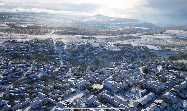 Bir hafta aradan sonra yeniden yağan karla beyaza bürünen Mihalıççık dron ile havadan görüntülenirken ortaya kartpostallık manzaralar çıktı.Eskişehir'in Mihalıççık ilçesinde geçtiğimiz hafta etkili olan kar yağışında ilçede bulunan binaların çatıları beyaza bürünmüş fakat sıcak havanın etkisiyle kar erimişti. Dün akşam saatlerinden itibaren kentin bazı bölgelerinde etkili olan kar, Mihalıççık'a da yağdı. Geçen haftaya göre daha fazla yağan kar sonrası ilçenin büründüğü manzara, dron ile havadan görüntülendi. İlçenin adeta beyaz gelinlik giymiş hali mest etti.