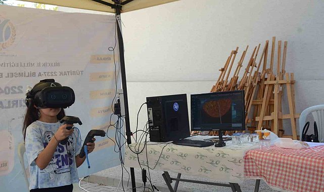 Bilecik'te gerçekleştirilen 'Türkiye Yüzyılı Işığında Bilecik Bilim Şenliği'nde çocuklar sanal gerçeklik gözlüğü ile Güneş sistemini gezdi.İl Milli Eğitim Müdürlüğünce düzenlenen Türkiye Yüzyılı Işığında Bilecik Bilim Şenliği'nde 50 proje sergilendi. Bilecik Öğretmenevinin bahçesindeki organizasyonun 24 atölye, 30 etkinlik, 4 seminer yapıldı. Türkiye Bilimsel ve Teknik Araştırma Kurumu 4007 Bilim Şenlikleri Destekleme Programı ile Bilecik Eğitimde Nitelik ve Vizyon (BİL-EN) Programı kapsamında gerçekleştirilen etkinliğin, 700 başvurudan kabul edilen 50 proje arasına girerek en iyi 3'üncü proje seçildi.3 gün boyunca devam eden şenliği binlerce çocuk ziyaret ederken, en çok sanal gerçeklik gözlüğü ilgi odağı oldu. Çocuklar gözlüğü takarak, 2 dakika boyunca Güneş sistemini gezdi. Proje hakkında bilgi veren, Bilecik Şeyh Edebali Üniversitesi Yönetim ve Bilişim Sistemleri öğrencisi Çağla Yurtseven, "Burada çocuklara sanal dünyanın gerçekliğini hayal dünyalarının gelişmesine bir imkan sağlamak sanal gözlük ile buluşturuyoruz. Bizim bugün işlediğimiz aslında 3 gün içerisinde işleyeceğimiz bu Güneş sistemi çocukları aslında bir nevi bir uzay mekiği olmadan uzaya çıkarmak ve onlarında hayal gücünü geliştirerek yarım etmeyi amaçlıyoruz. Onun dışında sanal dünyanın nasıl bir yer olduğunu görerek belki ilerleyen hayatlarında ne olmak isteyip isteyeceklerini görebiliyoruz. Bunun dışında sanal gerçekliği, hem gerçekleştirebilecek hem de gerçekleştiremeyecek birlikte birleştirdiği bir dünya söyleyebiliriz. Bunun dışında öğrencileri ikişer dakika alıp çok fazla sıra olduğundan bu deneyimi sağlayarak onları aslında Güneş'in içinden geçip yıldızları, Samanyolu'nu göstererek yardım ediyoruz" dedi.Şenliğin, Cumhurbaşkanlığınca belirlenen "Türkiye Yüzyılı" vizyonuyla kurgulandığı belirtildi.