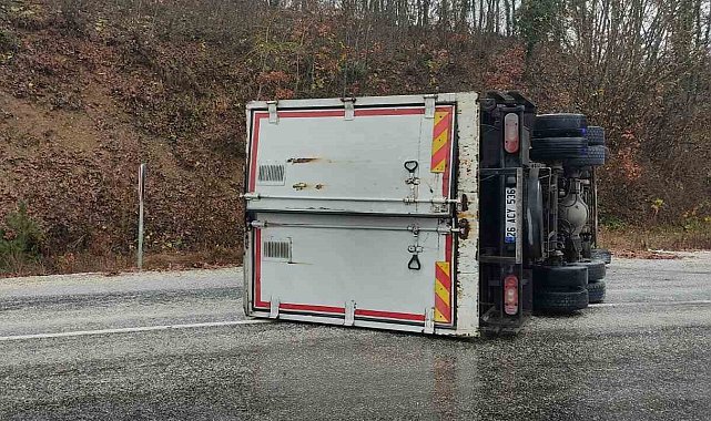 Bilecik'in Pazaryeri ilçesinde seyir halindeki tırın devrilmesi sonucu 2 kişi yaralandı.Alınan bilgilere göre; Pazaryeri- Bursa kara yolunun Gümüşdere köyü Ahıdağı mevkisinde seyir halindeki 26 ACY 536 plakalı tır sürücüsü Onurcan A. virajı alamayınca direksiyon hakimiyetini kaybederek aracını devirdi. Kazada sürücü ve araç içinde yolcu olarak bulunan Metin E. yaralandı. Yaralılar olay yerine gelen 112 Acil Servis ekiplerince yapılan ilk müdahalenin ardından Pazaryeri İlçe Devlet Hastanesine kaldırıldı.Kaza nedeniyle bir süre trafiğe kapalı kalan yolda ulaşım, tırın kaldırılmasının ardından normale döndü. Yaralıların sağlık durumun iyi olduğu öğrenildi.
