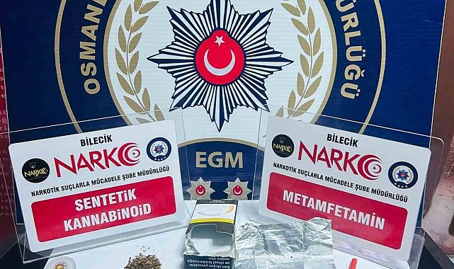 Bilecik'te, emniyet güçlerinin hareketlerinden şüphelendiği şahsın üzerinden uyuşturucu madde çıktı.Alınan bilgilere göre, Bilecik'in Osmaneli ilçesinde bir şahsın hareketlerinden şüphelenen emniyet ekipleri şahsın üzerinde arama gerçekleştirdi. Arama sırasında şüpheli şahsın üstünden 1 adet siyah renkli sustalı bıçak, 2 gram ağırlığında metamfetamin maddesi, 1 adet sigara şeklinde sarılmış esrar maddesi, 1 gram esrar maddesi (plastik kap içerisinde) ele geçirildi.Şüpheli şahıs hakkında yasal işlem başlatıldı.