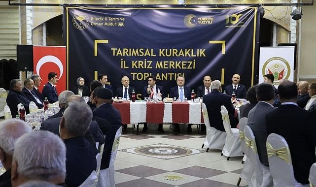 Bilecik İl Tarım ve Orman Müdürlüğü'nün koordinasyonunda, Vali Şefik Aygöl'ün başkanlığında, Bilecik'te ki mülki idare amirleri, belediye başkanları, il protokolü ve muhtarların da katıldığı 'Tarımsal Kuraklık İl Kriz Merkezi Toplantısı' düzenlendi.Vali Aygöl yaptığı konuşmada; kuraklıkla mücadelede en önemli mekanizma olarak, Bilecik'in kendi dinamiğine ve özel şartlarına uygun kuru ve sulu tarım alanları için 'il kuraklık eylem planları' oluşturulacak ve kriz olmadan tedbirlerin alınması gerektiğinin önemini vurguladı.Toplantıda 'Tarımsal Kuraklıkla Mücadele Eylem Planı' ele alındı. Tarımsal kuraklık konusunda kamuoyunun bilinç düzeyini artırarak paydaşların sürece dâhil edilmesi, çevresel açıdan sürdürülebilir tarımsal su kullanım planlaması ile kuraklığın yaşanmadığı dönemlerde ileriye dönük gerekli bütün tedbirlerin alınması ve kriz dönemlerinde etkin bir mücadele programı uygulayarak kuraklığın etkilerinin en aza indirilmesi hedeflendi.