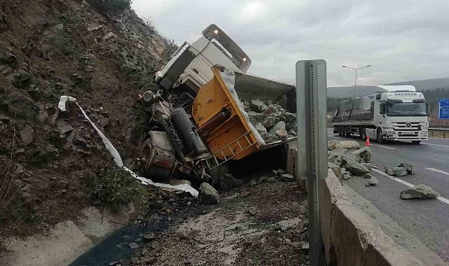 Bilecik'te taş yüklü kamyonun devrilmesi sonucu meydana gelen trafik kazasında 1 kişi hafif yaralandı.Edinilen bilgiye göre, öğle saatlerinde Bozüyük istikametinde Eskişehir yönünde ilerleyen M.B.'nin kullandığı taş yüklü kamyon, sürücünün direksiyon hâkimiyetini kaybetmesi üzerine yoldan çıktı. Yoldan çıkan araç yol kenarında bulunan kayalık olan tepeye çarparak, devrildi. Kazada araç sürücüsü M.B. yaralanırken, olay yerine sağlık ve polis ekipleri sevk edildi. Kazada yaralanan M.B. olay yerine gelen 112 Acil Servis ekiplerince yapılan ilk müdahalenin ardından Bozüyük Devlet Hastanesi'ne kaldırıldı. Sürücünün sağlık durumu iyi olduğu öğrenilirken, kaza ile ilgili inceleme başlatıldı.Öte yandan yola savrulan taş kütleleri karayolları ekipler tarafından temizlendi.