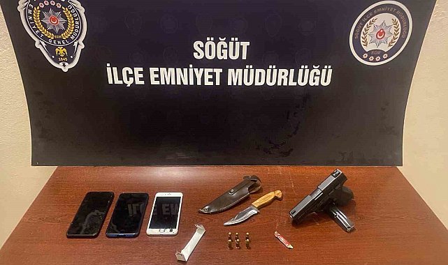 Bilecik'in Söğüt ilçesinde yakalanan şüphelinin üzerinden adeta cephanelik çıktı.Söğüt İlçe Emniyet Müdürlüğü ekiplerince 'Yağma-Tehdit-Hakaret' suçlarından aranan şüpheli düzenlenen operasyonla yakalandı.Şüphelinin üzerinde yapılan aramada; 1 adet ruhsatsız tabanca, 1 adet şarjör, 6 adet 7.65 mm çapında dolu fişek (Şarjöre Basılı Halde), 1 adet sap ve kesi kısmı 10 cm uzunluğunda kılıflı bıçak, 1 adet başka bir araca tahsisli şase numarası ve motor ibaresi bulunmayan beyaz renkli motosiklet, 3 adet cep telefonu, 3,68 gram metamfetamin uyuşturucu maddesi ele geçirildi. Gözaltına alınan şüpheli hakkında; 'Yağma, Tehdit, Hakaret', '6136 SKM', 'Resmi Belgede Sahtecilik', 'Uyuşturucu Madde İmal Ve Ticareti', 'Kullanmak İçin Uyuşturucu Madde Satın Almak, Kabul Etmek Veya Bulundurmak' suçlarından yasal işlem başlatıldı.Şüpheli çıkarıldığı adli makamlarca tutuklanarak Bilecik M Tipi Kapalı Ceza İnfaz Kurumu'na teslim edildi.