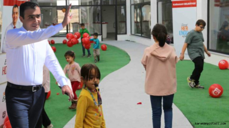 Karaman'da özel çocukların kendilerini diğer çocuklardan farklı hissetmeyip birlikte keyifli vakit geçirebilecekleri bir buluşma noktası olarak düşünülen "Çocuk Oyun Köyü" projesinin "Ana Kucağı" etabı hizmete açıldı.