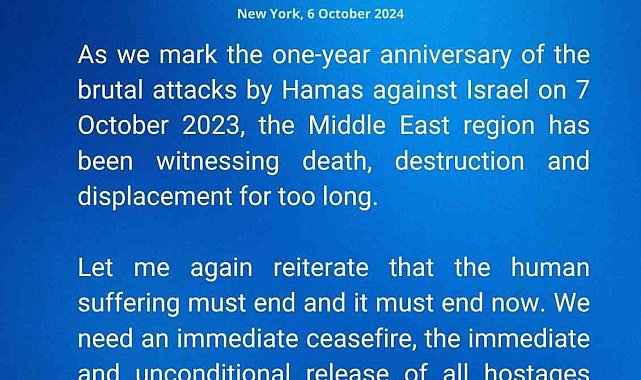 Birleşmiş Milletler (BM) Genel Kurulu 79. Dönem Başkanı Philemon Yang, 7 Ekim'in 1. yıl dönümü nedeniyle yaptığı yazılı açıklamada "Derhal ateşkese, tüm rehinelerin koşulsuz olarak serbest bırakılmasına ve bölgedeki çatışmalara diplomatik çözümler bulunması için diyaloğa geri dönülmesine ihtiyacımız var" dedi. Yang, Ortadoğu'daki çatışmaların tüm taraflarına uluslararası insani hukukun gerekliliklerini yerine getirme çağrısı yaptı.İsrail'in Filistin'e yönelik saldırıları devam ederken, Birleşmiş Milletler (BM) Genel Kurulu 79. Dönem Başkanı Philemon Yang, 7 Ekim'in 1. yıl dönümü nedeniyle yazılı bir açıklama yayınladı. Açıklamasında Orta Doğu'nun çok uzun bir süredir ölüm, yıkım ve yerinden edilmelere tanıklık ettiğini hatırlatan Yang, yaşanan acıların en kısa sürede sona ermesi gerektiğini ifade etti. "Derhal ateşkese, tüm rehinelerin koşulsuz olarak serbest bırakılmasına ve bölgedeki çatışmalara diplomatik çözümler bulunması için diyaloğa geri dönülmesine ihtiyacımız var" diyen Yang, "Hiçbir sürdürülebilir barış askeri yollarla sağlanamaz. Yalnızca BM Şartı, uluslararası hukuk ve ilgili BM kararlarına dayanan iki devletli bir çözüm, hem İsrail ve Filistin halkları hem de bölgenin geri kalanı için kalıcı barış ve güvenliği garanti edebilir" ifadelerini kullandı. İsrail, Hamas ve Hizbullah dahil çatışmaların tüm taraflarına uluslararası insani hukukun gerekliliklerini yerine getirme çağrısı yapan Yang, "Ayrıca acilen sivillerin korunması ve çok ihtiyaç duyulan insani yardımlara engelsiz erişimin sağlanması çağrısında bulunuyorum" dedi.