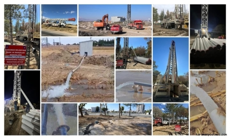 Kuraklığın göstermiş oldugu susuzluk sebebi ile sondaj çalışmalarına ara vermeden devam eden Karaman Belediye Başkanı Savaş Kalaycı ve ekibi Karamanlı hemşehrileri için gece gündüz sahada çalışmaya devam ediyor
