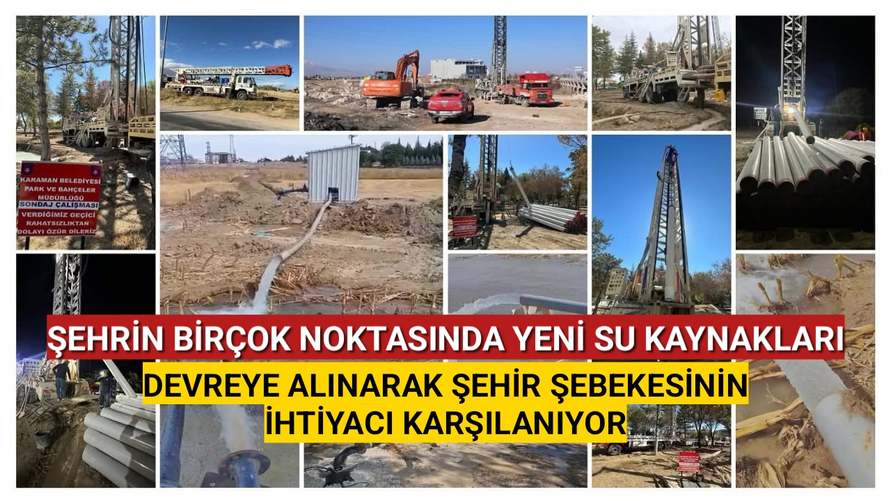 SONDAJ ÇALIŞMALARI ARALIKSIZ SÜRÜYOR️Karaman Belediyesi, kent genelinde sondaj çalışmalarına hız kesmeden devam ediyor. Şehrin birçok noktasında yeni su kaynakları devreye alınarak şehir şebekesinin ihtiyacı karşılanıyor.Bölgenin en kurak iklimini yaşayan Karaman’da ve köylerinde suyun sıfır noktasına gelmesi nedeniyle Belediye, su temin kapasitesini artırmak için 250 ila 300 metre derinliğinde 70’e yakın yeni kuyu açtı ve bu kuyulardan elde edilen suyu şehir şebekesine kazandırdı. Ayrıca farklı bölgelerde planlanan yeni sondaj çalışmaları kapsamında belediye ekipleri, birden fazla sondaj makinesiyle sahada gece gündüz yoğun şekilde çalışmaya devam ediyor.