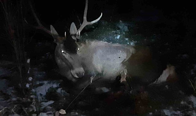 Bolu'nun Mudurnu ilçesinde minibüsün çarptığı geyik yaralandı. Yaralı geyik Doğa Koruma ve Milli Parklar Müdürlüğü ekipleri tarafından tedavi altına alındı.Kaza, Mudurnu ilçesinin girişinde bulunan Sanayi Sitesi mevkiinde meydana geldi. Edinilen bilgiye göre, Mudurnu ilçesi istikametinde seyreden Ali Özsoy idaresindeki 14 LE 374 plakalı minibüs, önüne çıkan geyiğe çarpmamak için manevra yaptı. Sürücünün manevra yaptığı yöne doğru kaçan geyiğe araç çarptı. Çarpmanın etkisiyle yaralanan geyik, ormanlık alana girerek çalılıklar arasında kaldı. Ali Özsoy aracından inerek, 112 Acil Çağrı Merkezi'ne bir geyiğe çarptığını bildirdi. İhbar üzerine bölgeye polis ekipleri sevk edildi. Geyiğin yerden kalkamadığını fark eden polis ekipleri, olayı Doğa Koruma ve Milli Parklar (DKMP) Şube Müdürlüğü ekiplerine bildirildi. Olay yerine gelen DKMP ekipleri tarafından yaralı geyik tedavi altına alındı. Kaza nedeniyle araçta ise büyük çapta maddi hasar meydana geldi.Kazayı anlatan sürücü Ali Özsoy, "Bolu'dan gelmekteydim, aniden yolda geyiği gördüm. Çok kaçtım fakat kurtaramadım. Geyikte yaralandı. Geyiği yoldan 1 kilometre uzaklıkta çalıların arasında oturur vaziyette bulduk" dedi.