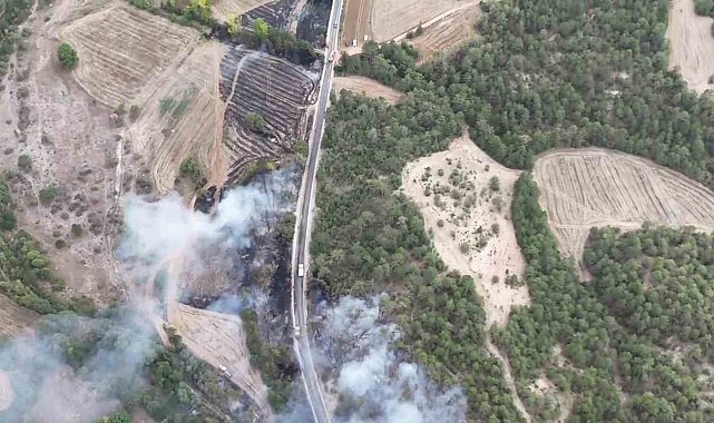 BOLU (İHA) – Bolu'nun Göynük ilçesinde çıkan orman yangını karadan müdahaleyle kısmen kontrol altına alındı. Ekiplerin söndürme ve soğutma çalışmalarının sürdüğü yangın, havadan da görüntülendi.Yangın, saat 15.00 sıralarında Karaardıç köyü yakınlarında başladı. Henüz bilinmeyen bir nedenle başlayan orman yangını için Nallıhan, Göynük ve Mudurnu ilçelerinden bölgeye çok sayıda itfaiye ve arazöz ekibi sevk edildi. Ekiplerin hızlı müdahalesi neticesinde yangının etrafı çevrildi. Yangını söndürmek için istenen helikopterlere gerek kalmadan, karadan müdahaleyle bazı noktalarda yangın kısmen kontrol altına alındı. Alevlerin etki ettiği alan ise havadan görüntülendi.Ekiplerin söndürme ve soğutma çalışmaları sürüyor.