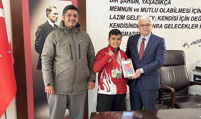 11 yaşındaki Burhaniyeli genç sporcu Ünal Yorulmaz, Antalya'da düzenlenen Dünya Muaythai Şampiyonası Minikler Kategorisi'nde Dünya 2.si olarak büyük bir başarı elde etti.Babası Zeki Yorulmaz ile birlikte, Burhaniye Belediye Başkanı Ali Kemal Deveciler'i ziyaret eden genç sporcu, başarısını paylaşarak mutluluğunu ifade etti.Başkan Deveciler, Ünal Yorulmaz'ın başarısından dolayı gurur duyduğunu ve onun gibi yetenekli gençleri her zaman destekleyeceklerini vurgularken, genç sporcuya tablet hediye etti.