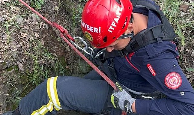 Talas ilçesi Kamber Mahallesi'nde besici Harun Aksoy, kendisine ait olan büyükbaş hayvanın 3 metrelik kuyuya düşmesi sonucu itfaiye ekiplerine ihbarda bulundu. Büyükşehir Belediyesi itfaiye ekipleri, gelen ihbar üzerine kısa sürede bölgeye gitti.