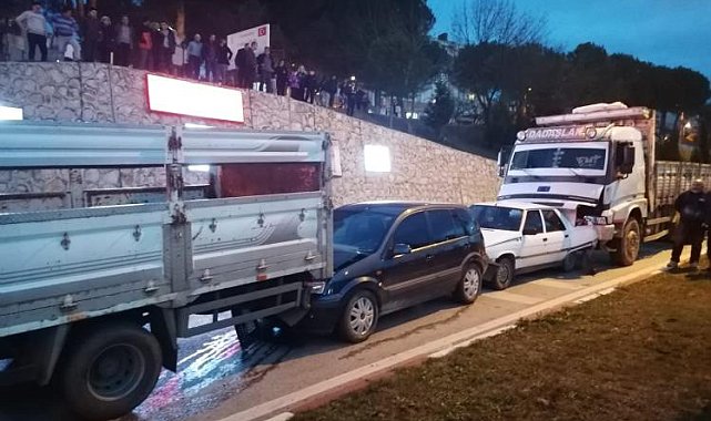 Çanakkale'nin Çan ilçesinde dört aracın karıştığı zincirleme trafik kazasında 1 kişi yaralandı.Edinilen bilgiye göre, Çan ilçesi eski cezaevi kavşağında araçlar kırmızı ışıkta beklediği sırada 35 TFH 25 plakalı kamyon, duramayarak önünde bulunan 22 HV 580 plakalı otomobile çarptı. Otomobil de önündeki 17 YR 936 plakalı otomobile ve otomobil 17 EK 039 plakalı kamyonete çarptı. İhbar üzerine 112 acil sağlık ekipleri olay yerine sevk edildi. Zincirleme kazada hafif yaralanan 17 EK 039 plakalı araçtaki 1 kişi, sağlık ekiplerinin müdahalesinin ardından Çan Devlet Hastanesine sevk edildi.Polis kazayla ilgili inceleme başlattı.