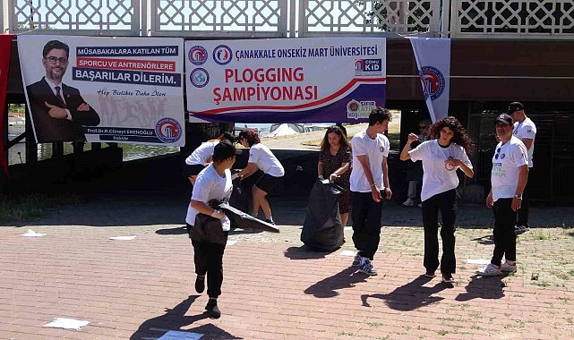 Çanakkale Onsekiz Mart Üniversitesi (ÇOMÜ) tarafından çevre koruma bilincini artırmayı hedefleyen yeni nesil bir spor dalı olan Plogging şampiyonası gerçekleştirildi. Katılımcılar, yürüyüş ve koşu egzersizleri sırasında etrafta bulunan çöpleri topladı.ÇOMÜ tarafından düzenlenen 'Sıfır Atık için Koşuyoruz' temalı Plogging Şampiyonası Sarıçay Caddesinde düzenlendi. Etkinlik öncesinde, ÇOMÜ Rektörü Prof. Dr. Cüneyt Erenoğlu, "Plogging yeni bir akım, özellikle İsviçre'de ortaya çıkan bir akım. Çevre dostluğuyla, yeşil dönüşümle, sürdürülebilirlikle sporun birleştirildiği bir tema, bir spor dalı haline gelmiş. Birçok ülkede federasyonlar oluşmuş durumda. Biz burada Çanakkale'mizde ilk defa bu etkinliği gerçekleştirerek bilinci oluşturmak, çevre bilincini tekrar hatırlatmak, Bir de gençlerimizi bu alanlarda da üniversite gençliğini öncü olması amacıyla, üniversite kent işbirliği, üniversite şehir işbirlikleri açısından öncü olması amacıyla planladık. Sağ olsun hem üniversitemizin spor birliği her etkinlikte olduğu gibi hem de aynı şekilde kurumsal iletişim direktörlüğü tarafından organize edildi ve kentte de karşılığını bulduğuna inanıyoruz" dedi.Ardından 'Sıfır Atık için Koşuyoruz' temalı Plogging Şampiyonası, Sarıçay Caddesinde başladı. Katılımcılar, yürüyüş ve koşu egzersizleri sırasında etrafta bulunan çöpleri topladı.Etkinliğe, Kültür ve Turizm İl Müdürü Çağman Esirgemez, Çevre, Şehircilik ve İklim Değişikliği Müdürü Bekir Çelen, Troya Müzesi Müdürü Rıdvan Gölcük ile çok sayıda akademisyen, öğrenci ve vatandaşlar katıldı.