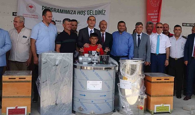 Çankırı'da arıcılıkla uğraşan 24 kişiye yüzde 70 hibeli 'arıcılık ekipman paketi' dağıtıldı.Tarım ve Orman İl Müdürlüğünce yürütülen Kırsal Dezavantajlı Alanlar Kalkınma Projesi çerçevesinde arıcılara yüzde 70 hibeli destek verildi. Ekipmanlar düzenlenen törenle dağıtıldı. Proje çerçevesinde arıcılıkla uğraşan 24 kişiye yüzde 70 hibeli arıcılık ekipman paketleri hibe edildi. Ekipman paketlerini alan arıcılar büyük heyecan yaşadı."Arıcılık ekipmanlarını Çankırılı arıcılarla buluşturmanın sevinci ve mutluluğu içerisindeyiz"Programın açılışında konuşan Çankırı Arı Yetiştiricileri Birliği Başkanı Osman Tamer, "Burada gördüğünüz arıcılık ekipmanlarını Çankırılı arıcılarla buluşturmanın sevinci ve mutluluğu içerisindeyiz. Dünya üzerindeki yediğimiz içtiğimiz ürünlerin yüzde 80'ini arılar gerçekleştirmektedir. Aynı zamanda bal, polen, propolis ve arı sütü insanın sağlığının en temel ögelerini oluşturur. Efendimiz Hazreti Muhammed'in buyurduğu gibi 'bal her derde şifadır'. Arıcılarımızın bol bereketli kazanç elde etmesi için bu malzemeleri Çankırılı arıcılara ulaştırılmasında emeği geçen herkese teşekkür ederim" dedi.