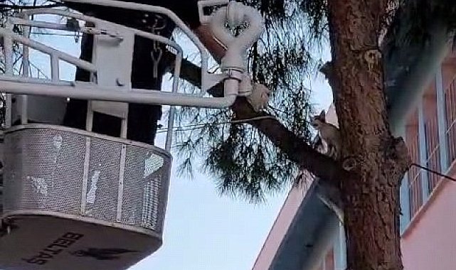 Manisa'nın Sarıgöl ilçesindeki bir ilkokulun bahçesindeki çam ağacına çıkan ve inemeyen kediyi itfaiye ekipleri kurtardı.Manisa'nın Sarıgöl ilçesindeki Mimar Sinan İlkokulu bahçesindeki çam ağacına sabah saatlerinde tırmanan kedinin çıktığı ağaçtan inemedigini gören öğrenciler durumu öğretmenleri ve okul idarecilerine haber verdi. Durumun itfaiye ekiplerine haber verilmesinin ardından okula gelen ekipler, merdivenli itfaiye aracıyla kediyi çıktığı ağaçtan indirdi. Ağaçtan indirilen kediye öğrenciler tarafından su ve yiyecek verildi.Okul öğretmenlerinden Osman Demirtaş, "Öğrencilerimiz çam ağacındaki kediyi fark edince bana haber ettiler ve ben de okul Müdürümüz Adem Çelik'e bildirdim. Durumu itfaiyeye haber ettik. Ekipler kısa sürede gelerek kesiyi ağaçtan kurtardı.