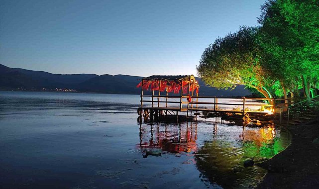Doğu Anadolu'nun ikinci büyük gölü Çıldır Gölü, gün batımının göl ile buluştuğu anlarda ortaya çıkan görsel şöleniyle herkesi büyülemeye devam ediyor.Kıyı şeridinde bulunan balıkçı restorandın bulunduğu alandaki ağaçlara takılan farklı ışıklar gün batımı ile birleşince, adeta kartpostallardan fırlamış gibi bir manzara sunuyor. Çıldır Gölü, her mevsimde büyüleyici doğasıyla görenleri adeta büyüsü altına alıyor. Ancak, kış mevsiminde, gölün yüzeyini kaplayan 80 santimetreye kadar ulaşan buz tabakasıyla adeta masalsı bir atmosfer oluşturuyor. Beyazın ve mavinin muhteşem dansını sunan bu doğal güzellik, bölgenin en etkileyici noktalarından biri olarak öne çıkıyor. Gölün tamamen buz tutmuş yüzeyinde yürümek, adrenalinle dolu eşsiz bir deneyim sunuyor.Çıldır gölü kıyısında bulunan balıkçı restoranın sahibi Atalay Uzunkaya, göl kıyısındaki ağaçları ışıklandırdı. Gün batımı saatleri geldiğinde, İskele ve göl kıyısında adeta başka bir dünya beliriyor. Göl kıyısında toplanan insanlar, gün batımı ile ışıkların göle yansıması sonrası oluşan muhteşem manzarayı izleyerek bu anın tadını çıkarıyor. Çıldır Gölü'nün yüzeyi, güneşin batarken oluşturduğu renk geçişleriyle de adeta dans ediyor.