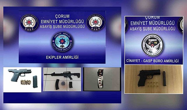 Çorum İl Emniyet Müdürlüğü'nün asayiş ve güvenliğin sağlanmasına yönelik çalışmaları devam ediyor. Asayiş Şube Müdürlüğü ekipleri tarafından 08 Mart-15 Mart tarihleri arasında yapılan şok uygulamalar ile şüphe ve ihbar üzerine yapılan çalışmalar neticesinde çok sayıda silah ve uyuşturucu madde ele geçirildi.Yapılan uygulamalar son bir hafta içerisinde 9 ruhsatsız tabanca, 5 tüfek, 6 kuru sıkı tabanca ve 8 kesici ve delici alet olmak üzere toplam 28 adet silah, 15 adet şarjör, 238 adet fişek, 35 adet sentetik ecza maddesi, 20 gram esrar, 32,68 gram bonzai maddesi ile 129 adet iskambil kağıdı ve 2 bin 800 lira para ele geçirildi.