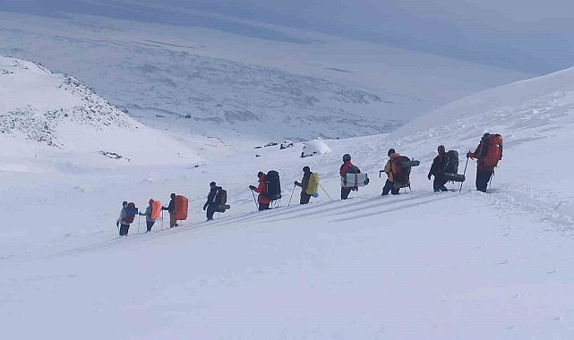 Kahramanmaraş merkezli 6 Şubat'ta meydana gelen depremlerde hayatını kaybedenler anısına ve zulme uğrayan Filistin halkı için 4 bin 58 rakımlı Süphan Dağı'nda zirve tırmanışına geçen Vadi Doğa Sporları Kulübü üyeleri, yoğun kar ve tipi nedeniyle geri dönmek zorunda kaldı.Bitlis'in Adilcevaz ilçesi sınırları içerinde bulunan ve deniz seviyesinden 4 bin 58 metre yükseklikteki Süphan Dağı'na Kahramanmaraş merkezli 6 Şubat'ta meydana gelen depremlerde hayatını kaybedenlerin anısına ve zulme uğrayan Filistin halkı için zirve tırmanışına geçen Vadi Doğa Sporları Kulübü üyeleri, yoğun kar ve tipi nedeniyle geri dönmek zorunda kaldı. Dağcılar, Aydınlar beldesine bağlı deniz seviyesinden 2 bin 200 metre yüksekteki At Yaylası'na kamp kurdu. Gece saatlerinde tırmanışa devam eden Vadi Doğa Sporları Kulübü Başkanı Ömer Demez'in yönetimindeki dağcılar, yoğun tipi ve fırtınadan dolayı zirveyi iptal edip geri dönme kararı aldılar. Geri dönme kararı alan ekip, Filistin bayrağı açıp Filistin ve depremde hayatını kaybedenleri yad edip geri döndüler."Kötü hava zirveye çıkmalarına engel oldu"Kahramanmaraş merkezli 6 Şubat'ta meydana gelen depremlerde hayatını kaybedenlerin anısına ile Filistin halkına yapılan zulme dikkat çekmek için Süphan Dağı'na tırmanış kararı aldıklarını ifade eden Vadi Doğa Sporları Kulübü Başkanı Ömer Demez, "Zorlu bir tırmanıştı. Rüzgar ve tipi zirveye ulaşmamıza izin vermedi. Bu nedenle kendimizi riske sokmayıp geri dönme kararı aldık. Depremde hayatını kaybedenlere Allah'tan rahmet diliyoruz. Filistin katliamını yapan bütün zalimleri kınıyoruz. Yaşasın Filistin, yaşasın mazlumlar" diye konuştu.