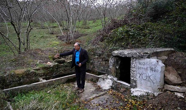 Kocaeli'de tarihi öyküsü bilinmeyen su pınarı defineciler tarafından talan edilince köylüler çareyi "Define yok" yazmakla buldu. Yapının korunmasını isteyen köylüler, pınarın ismini de konumunu da bilmeyenlere söylemiyor.İzmit-Kandıra arasındaki ormanlık alanda bulunan su pınarının hangi tarihte ve kim tarafından inşa edildiği bilinmiyor. Yıllardır hem bölgede otlatılan hayvanlar ile yaban hayatın hem de fındık bahçeleri bulunan vatandaşların su ihtiyacını karşılayan pınar, zaman zaman definecilerin de uğrak noktası oluyor.Su pınarının ormanlık alanda bulunmasını fırsat bilen defineciler, çeşitli zamanlarda tarihi yapıya ve çevresinde bulunan yalaklara zarar verdi. Bu duruma dayanamayan köylüler ise 2021 yılında yapının tahrip olan kısımlarını tamir ederek, büyük harflerle "Define yok" yazdı. Yapının korunmasını isteyen köylüler, pınarın ismini de konumunu da bilmeyenlere söylemiyor."Burada para yok, aramayın"Su pınarı hakkında bildiklerini anlatan İdris Derin, "Tam tarihi belli değil, atalarımızda ne zaman yapıldığını bilmiyor. Ceneviz devri diyen de var. Birkaç tadilattan geçmiş. Kaçak definecilerin etrafı kazması, pınara tahribat vermesi bizi tedirgin ediyor. Buradaki varlığı yok etmek pahasına bunu yapıyorlar. Geçenlerde pınarın bir tarafını kırmışlar. Buradaki bir vatandaşımız da bunu yazmış. Çok da güzel bir şey yapmış 2021 yılında. 'Burada para yok, aramayın' demişler ama yine de bitmemiş" dedi.Pınarın suyunun da kaliteli olduğunu söyleyen Derin, "Pınarımızın suyu çok güzel, harika. Kireçsiz bir su. Gelen geçen piknikçilerin eğlenip çay demledikleri, oturup yemek yedikleri, hava aldıkları bir yer" diye konuştu.Tarihi yapının tahrip olan kısımlarının, bölgede tarlası bulunan vatandaşlar tarafından onarıldığını ifade eden Derin, "Tarla sahipleri yıkıldığını görünce üzülerek yıkılmasın diye tadilat yapıyorlar. Tuğladan örüp, bir şey yazalım da kimse tahribat vermesin diye bu yazıyı yazmışlar. Ben kendilerine de teşekkür ediyorum" şeklinde konuştu."Biz ismini biliyoruz ama bizde saklı kalsın istiyoruz"Geçmiş yıllarda Kocaeli Üniversitesinden gelen bir ekibin bölgede yüzey araştırmalar yaptığını kaydeden İdris Derin, "Horasan yapısına baktığımızda tarihi yaklaşık 700-800 yılın üzerinde olabilir. Kocaeli Üniversitesinden yüzeysel araştırma ekibi gelmişti. Onlar '500 ile 700 yılın arasında olabilir' demişti. Biz ismini biliyoruz ama bizde saklı kalsın istiyoruz. Talan olmasına gönlümüz razı olmaz" ifadelerini kullandı."Vatandaşlar su ihtiyaçlarını buradan gideriyor"İdris Derin, su pınarının çevresinde 3 yalak bulunduğunu ancak birinin definecilerce kırıldığını da belirterek, "Geçmişte hayvanlar daha kalabalık olduğu için 300-500 hayvan geliyor. Susadıkları zaman sularını içebilecek kapasitede büyük yalaklar yapılmış ama bunlar artık yok. Burada fındık tarlaları olduğu için vatandaşlar su ihtiyaçlarını yine buradan gideriyor" sözlerine ekledi.
