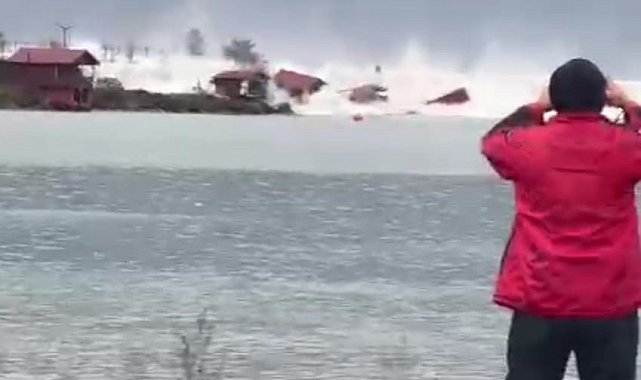 Trabzon'un Sürmene ilçesinde etkili olan dev dalgalar bugün Yeniay mahallesinde bulunan balıkçı barınaklarını adeta domino taşı yıkar gibi yıktı, geçti. 4 balıkçı barınağı tamamen dalgalara kapılarak yıkıldı.Fırtına Doğu Karadeniz Bölgesi'nde etkisini sürdürüyor. Fırtına nedeniyle denizde dev dalgalar oluşmaya devam ederken, son olarak dalgalar Trabzon'un Sürmene ilçesi Yeniay Balıkçı Barınakları'nın bulunduğu liman mendireğini aşarak yan yana bulunan 4 tane balıkçı barınağını adeta bir domino taşı gibi yıktı, geçti. O anlar sahile dev dalgaları çekmeye gelen gençlerin cep telefonu kameralarına yansıdı.