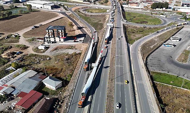 Sivas'ta kurulması planlanan Rüzgâr Enerji Santrali'nin (RES) kanat nakliyesi sırasında trafikte uzun kuyruk oluştu. Dev kanatları taşıyan çekicilerin zorlu manevraları dron ile havadan görüntülendi.Rüzgâr enerjisi üretiminde önemli bir yer tutan Sivas'ta yeni Rüzgâr Enerji Santralleri (RES) kurulmaya devam ediyor. Bu çerçevede bir firmaya ait yeni rüzgâr türbininin nakliyesi yapıldı. Devasa kanatları taşıyan tırlar, yolculukta zorlu dakikalar yaşadı. Ankara istikametinden gelen ve Kayseri istikametine dönmek isteyen çekiciler, bir süre trafiğin sıkışmasına neden oldu. Kanatların geçişi için genişletilen yollarda manevra yapan çekiciler dron ile havadan görüntülendi. Yaklaşık 1 saatte geçişi tamamlanan dev kanatlar, kurulum yapılmak üzere belirlenen alana doğru yola çıktı.Rüzgâr türbinlerini geçişi için trafikte bir süre bekleyen Murat Kandemir, "Burada mecbur bekleyeceğiz. Bu hizmet bir şekilde yapılacak. Yapacak bir şey yok. Kanatların geçişi zor, devasa büyüklükte. Zaten burada çalışma vardı. Ne için olduğunu merak ediyordum. İnip baktığımda kanatlar için olduğunu gördüm. Polislerimiz burada seferber olmuş durumda. Vatandaşlarımız da biraz anlayışlı olacak. Aşağı yukarı 1 saat bekleyeceğiz" ifadelerine yer verdi.Nakliye işinin gece saatlerinde yapılması gerektiğini ifade eden Öztürk Yılmaz, "Bilinçsiz ve sistemsiz yapılan bir iş. Bu saatte trafik akışına engel olan bir durum. Ekipler seferber oldu ama sıkıntı giderilmedi" şeklinde konuştu.