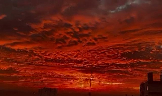 Diyarbakır'da sabahın ilk saatlerinde gökyüzü kızıla büründü.Diyarbakır'da sabahın ilk saatleri ile kızıla çalan gökyüzü, gören herkesi durdurup kendine baktırarak fotoğraf çektirdi. Turuncu, sarı ve kırmızının uyumu ile oluşan kartpostallık görüntü herkesi adeta büyüledi.Ortaya çıkan manzara kentin birçok noktasında cep telefonu kamerası ile kaydedildi. Bulutları kızıla boyayan güneş ışıklarının manzarası mest etti.