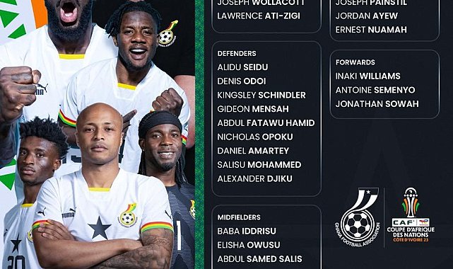 Gana Milli Takımı'nın, Afrika Uluslar Kupası'nda mücadele edecek kadrosu açıklandı. Listede Fenerbahçe forması giyen stoper Alexander Djiku ile Beşiktaş'ta top koşturan savunmacı Daniel Amartey de yer aldı. Süper Lig ekiplerinden Samsunspor'da oynayan Kingsley Schindler de Gana Milli Takımı'nın aday kadrosuna dahil edildi.