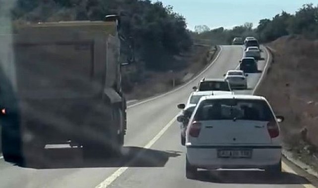 Bilecik'te geliş gidiş tek şeritli yolda düğün konvoyundan sıkılan kamyon sürücüsünün hatalı sollama yapması tepkilere neden oldu.Bilecik-İnegöl kara yolunda ilerleyen bir düğün konvoyundan sıkılan 11 BLV 06 plakalı kamyon sürücüsünün hatalı sollama yapması tepkilere neden oldu. O an düğün konvoyunda bulunan bir vatandaş tarafından cep telefonu kamerasını ile görüntülenirken, kamyon sürücünün önündeki 8 araç olmasına rağmen sollama yaptığı görüntülendi.Öte yandan karşı şeritten herhangi bir araç gelmemesi muhtemel bir facianın önüne geçmiş oldu.