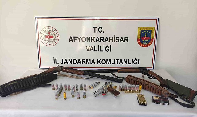 Afyonkarahisar'da düğün eğlencesinde havaya ateş ederek genel güveliği tehlikeye sokan iki şahsın evinde yapılan aramada ruhsatsız av tüfekleri ve fişekleri ele geçirildi.Afyonkarahisar İl Jandarma Komutanlığı ekipleri, İ.Ö. ve R.Ö. isimli şahısların merkeze bağlı Gebeceler beldesinde yapılan düğün eğlencesinde havaya ateş ettiklerini belirledi. Ekipler, genel güvenliği kasten tehlikeye soktuklarının tespit edilmesi üzerine, şüpheli şahısların ikametlerinde yaptı. Yapılan aramada, 2 adet ruhsatsız av tüfeği, 1 adet tabanca, 28 adet kartuş, 3 adet şarjör, 60 adet tabanca fişeği ele geçirildi. Meydana gelen olayla ilgili adli tahkikat başlatıldı.
