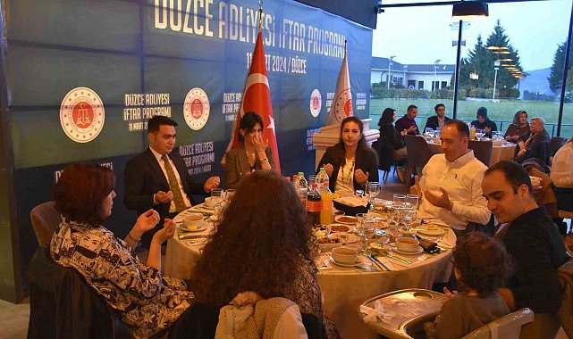 DÜZCE(İHA) – Düzce Adliyesi personeli iftarda bir araya geldi. İftar davetinde Ramazan ayına özel gelenekler sergilendi. Düzce Cumhuriyet Başsavcısı Yasin Emre "İftarımızı büyük bir aile olarak hep birlikte açmaktan gurur duyuyorum" dedi.Mutfak Sanatları Merkezinde düzenlenen Düzce Adliyesi iftar programına Düzce Cumhuriyet Başsavcısı Yasin Emre, Adalet Komisyonu Başkanı Dr. Mert Gümüşay, Cumhuriyet Savcıları, Hakimler, yazı işleri müdürleri, adliye personeli ve aileleri katıldı. Okunan ezanla birlikte oruçlar açıldı.İftar programında konuşan Başsavcı Yasin Emre, Ramazan ayının hayırlara vesile olmasını diledi. Emre adliye personelinin büyük bir aile olduğunu işaret ederek "İftarımızı büyük bir aile olarak hep birlikte açmaktan gurur duyuyorum. Bizim işlerimiz zor. Adliyede dosyalar, nöbetler, özveri gerektiren bir iş. Bizlerde tüm personellimizi tüm meslektaşlarımızı aynı şartlarda nasıl çalıştıklarının farkındayız. Bu düşüncelerle iftarımızı aramıza yeni katılan arkadaşlarımızla birlikte yapalım, kaynaşalım istedik. Hep birlikte büyük bir aile olarak iftarı birlikte geçirelim istedik" dedi.Yemekte Ramazan ayına özel geleneklerde yaşandı. Semazen gösterilerinin yer aldığı iftar programında Ramazan'a özel şekerlemeler de ikram edildi.İftar sofralarında misafirlere ikram edilen özel reyhan şerbeti ile ağızlar tatlandı.