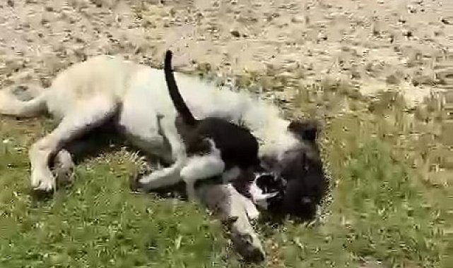 Elazığ'da kangal ile kedinin dostluğu görenleri şaşırtıyor.Elazığ merkeze bağlı Nuralı köyünde kangal cinsi bir köpek ve kedinin dostluğu görenlerin dikkatini çekiyor. Kedinin, köpeğin yanına uzanıp yatması ve oynaması çevredekiler tarafından cep telefonu kamerasıyla kaydedildi. Sıcak havanın tadını çıkararak oynayan kedi ve köpeğin dostluğu ise görenlerin yüzünde tebessüm oluşturdu.