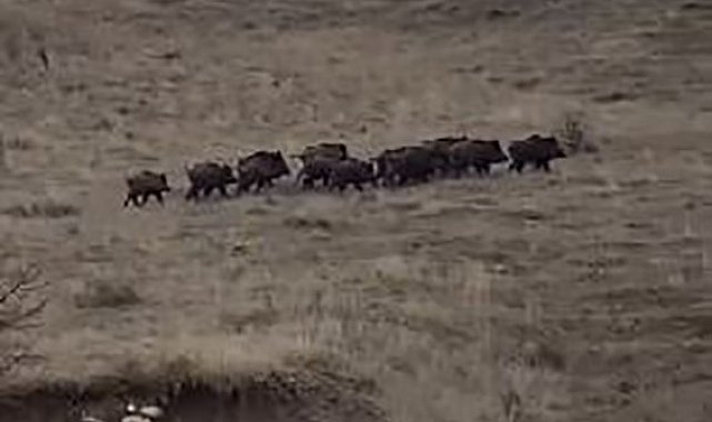 Elazığ'da yiyecek arayan domuz sürüsü cep telefonu kamerasına yansıdı.Olay, Kovancılar ilçesinde yaşandı. Edinilen bilgiye göre bir sürücü, karayolunda seyir halindeyken yiyecek arayan domuz sürüsünü fark etti. Domuzların etraftaki araçlara aldırış etmeden yiyecek araması, cep telefonu kameralarına yansıdı. Domuz sürüsü, bir süre sonra gözden kayboldu.